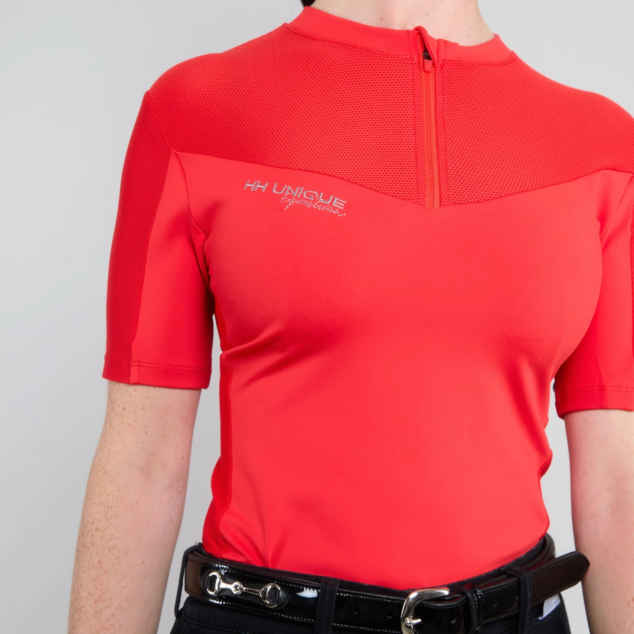 Designed for clinics, training, and riding, it offers a tailored fit, 360° stretch, and premium embroidery detailing on the front and spine.